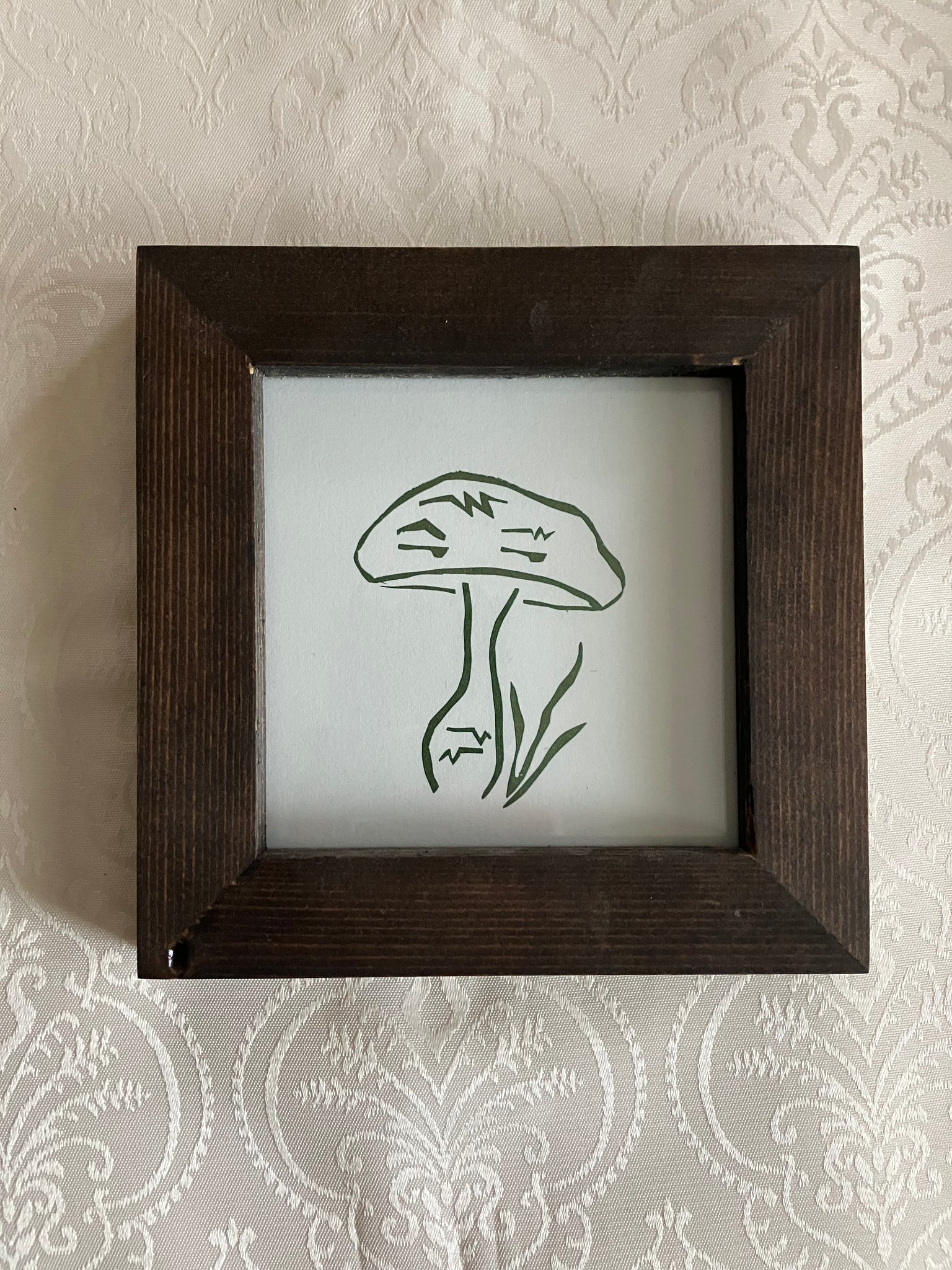 4 x 4 Handmade reclaimed wood frame with "Flippant Mushroom" Screen print.